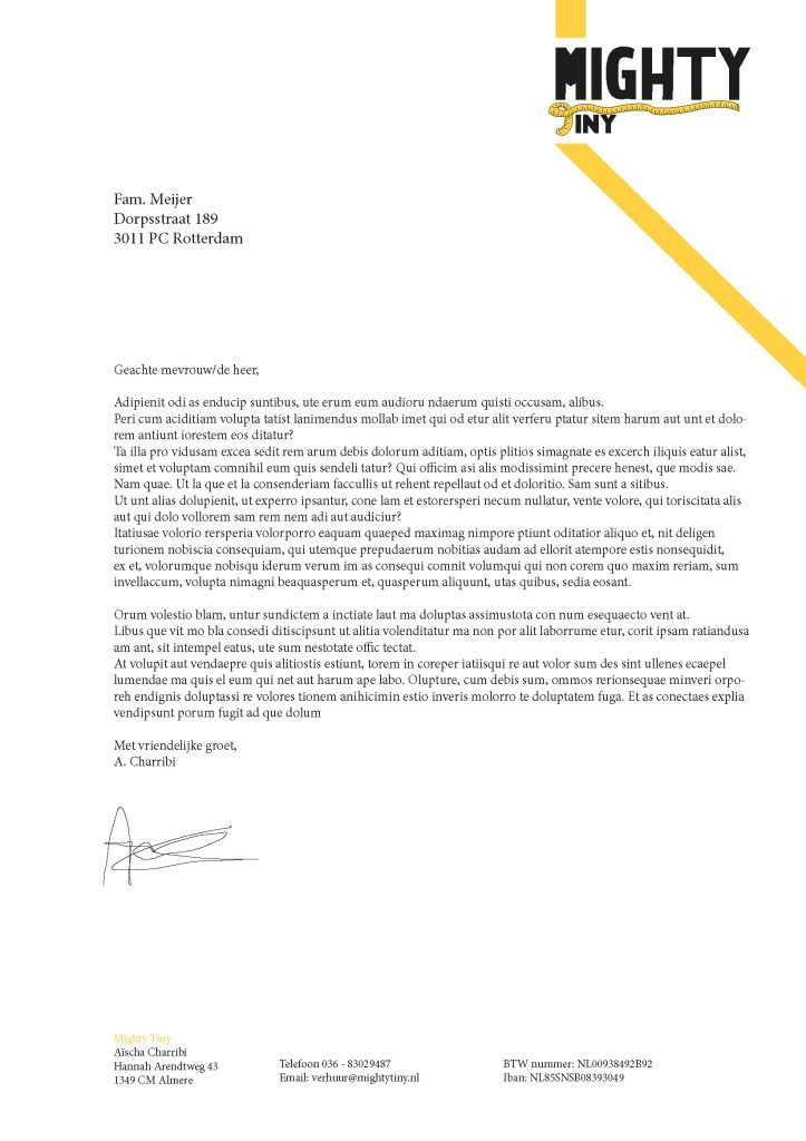 Mighty Tiny is een fictief bedrijf die zorgt voor de bouw en verhuur van duurzame tiny houses. Milieuvriendelijkheid staat centraal, maar ook eenvoud, en duurzaamheid. Ik heb in opdracht voor Mighty Tiny een logo gemaakt, en een bijpassende huisstijl die toegepast is op onder andere een visitekaartje, briefpapier en een envelop.