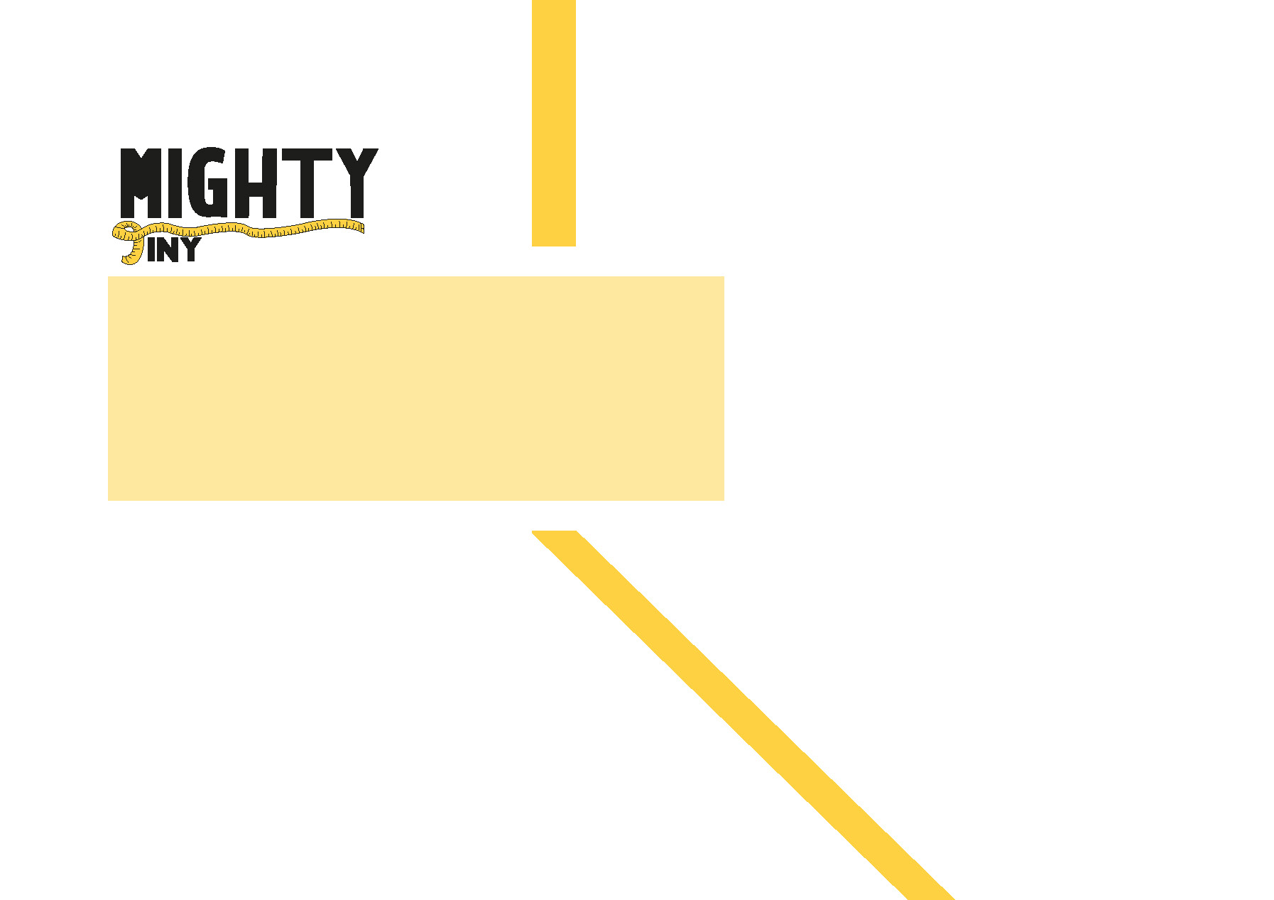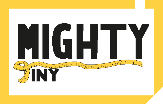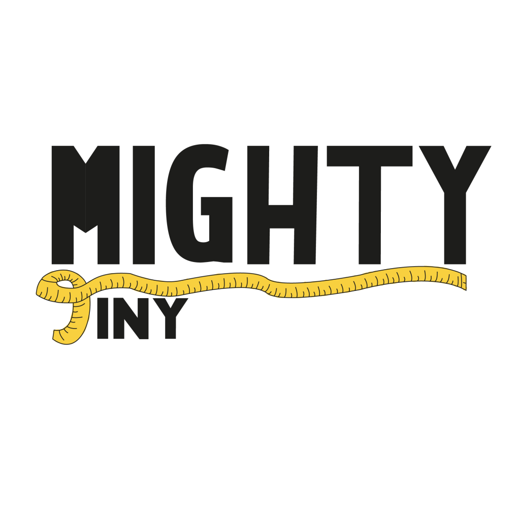 Dit is het logo geworden. De T van het woord Tiny is een meetlint, wat symbool staat voor het vakmanschap van Mighty Tiny. Ik heb ook gespeeld met de typografie. Zo is het woord Mighty groot en het woord Tiny kleiner