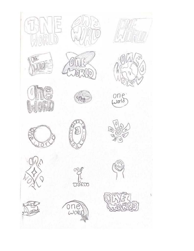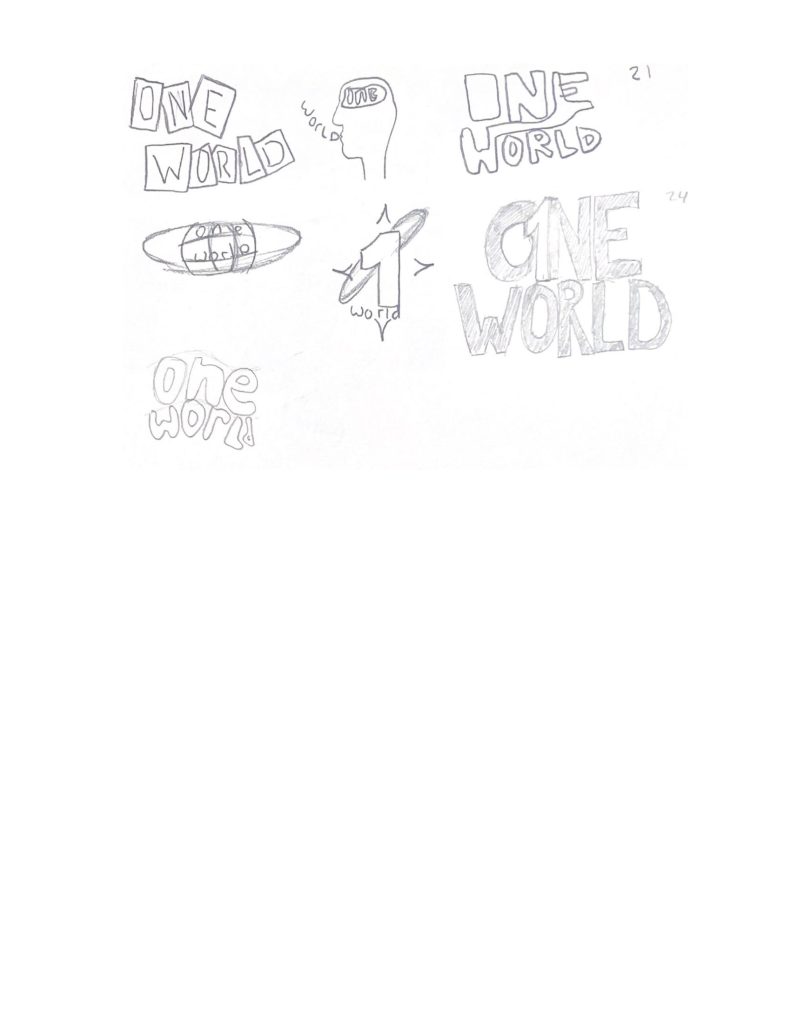 Ik heb gekozen voor de speelse typografie om de jongere doelgroep aan te spreken. De zwarte kleur staat symbool voor de serieuze onderwerpen die One World bespreekt.